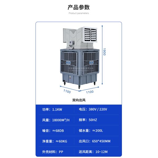Evaporative Cooling Technology: Utilizes water evaporation to cool the air, making it an energy-efficient and eco-friendly solution.